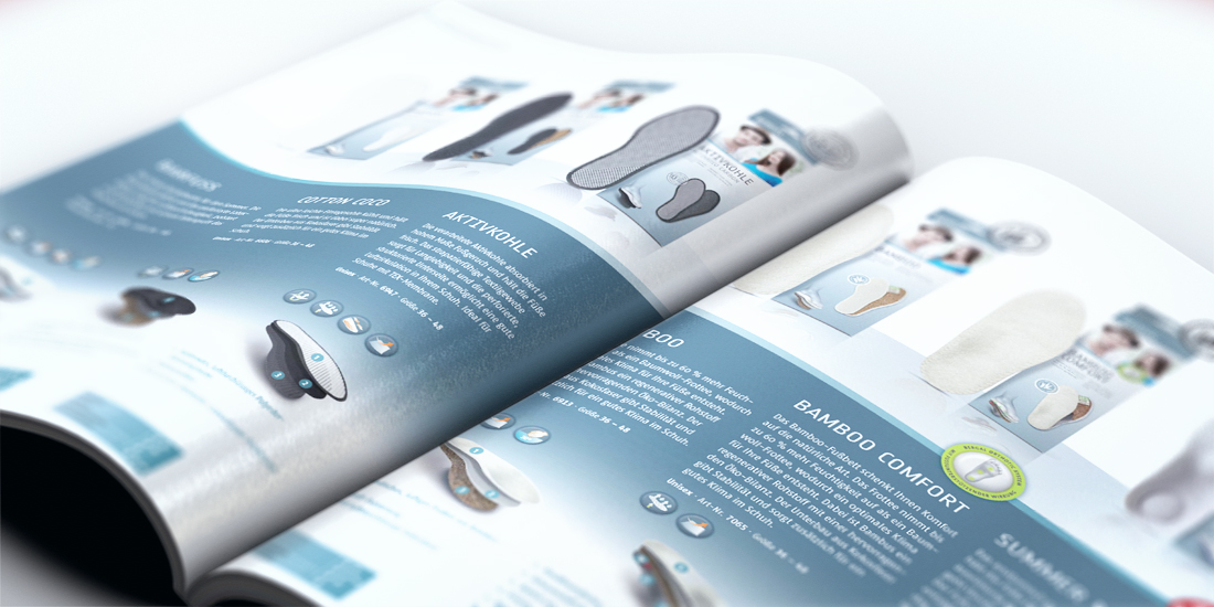 Von diversen Sohlen und Einlagen eines der führenden Unternehmen der Branche übernahm ich das 3D Modeling, Texturing, Rendering und Composing als „Explosionszeichnungen“. Einsatz fanden die 3D-Modelle auf der Produktverpackung und Produktbroschüre sowie im Web.
